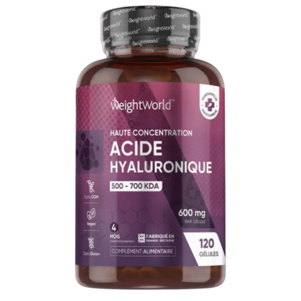 WeightWorld Acide Hyaluronique 120 comprimés est un complément hautement dosé conçu pour soutenir l’hydratation, la souplesse de la peau et le confort articulaire. Chaque comprimé contient 200 mg d’acide hyaluronique pur, reconnu pour ses propriétés anti-âge. Formule vegan et sans additifs artificiels, idéale pour la beauté et la mobilité. Fabriqué selon les normes GMP pour garantir qualité et sécurité.