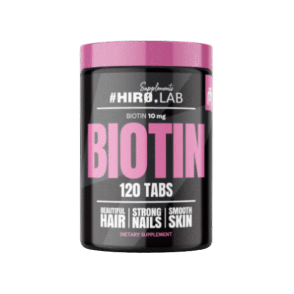 Biotine de la marque fiable Hiro.Lab est un complément alimentaire hautement dosé en vitamine B7 (D-biotine), reconnue pour renforcer les cheveux, les ongles et améliorer l’apparence de la peau. Chaque comprimé contient 10 mg de biotine pure, une forme hautement biodisponible, pour soutenir aussi bien la beauté extérieure que le bon fonctionnement du système nerveux et du métabolisme énergétique. Idéal en cas de chute de cheveux, ongles cassants ou peau sèche.