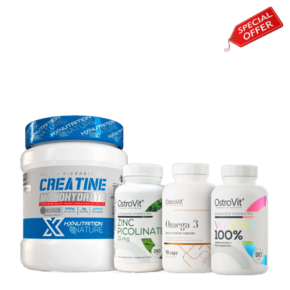 PACK CREATINE HX 300g + ZINC PICOLINATE 150 Caps + OMÉGA 3 90 Caps + MULTIVITAMIN 90 Caps OSTROVIT